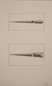 Zeichenstift auf Pergament, gerahmt