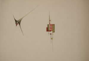 Zeichenstift, Farbstift, Plakafarbe auf Papier